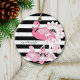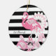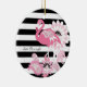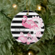 Modern Black and White Stripe Pink Flamingo Ceramic Ornament