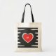 Modern Black and White Striped Red Heart Monogram Tote Bag