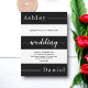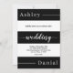 This elegant black and white wedding invitation is perfect for a modern wedding. the simple design features elegant black and white calligraphy on a black and white stripes background.