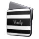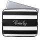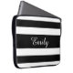 Modern Black And White Stripes Pattern Name Laptop Sleeve