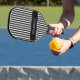 Modern Black and White Stripes Personalised Pickleball Paddle.