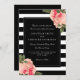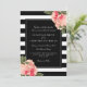 Modern Black and White Striped Wedding Invites with Coral and Pink Flowers. Created by Colourful Designs Inc. Copyright 2016