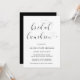 Typography bridal luncheon invitation featuring the words, "bridal luncheon" in black calligraphy with swashes and a heart at the end and dotting the "i", over a white background. The backside is black and may be changed to any colour you wish. The simple and minimal layout and lots of open space give this design a modern feel and the calligraphy lettering and heart give it a romantic twist.