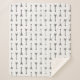 Bold modern black arrows pattern over a white sherpa fleece blanket.