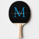 Modern Black Bright Ocean Blue Monogram Elegant Script Name Ping Pong Paddle