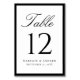 This wedding table number card features “Table” in elegant black calligraphy, paired with a bold serif table number at the center for clear, refined presentation. The couple’s names and wedding date are displayed below in classic serif lettering, while a black border frames the design for a clean, modern, and timeless look that coordinates beautifully with formal, minimalist, and contemporary table settings. This card measures 3.5"x5". Edit each table number individually and add them to your cart to ensure a smooth ordering process.