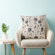 Modern Black Botanical Floral Sketch Pattern Cushion
