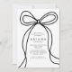 This elegant black and white graduation party photo invitation features a chic black doodle bow with graduation party details in classic typography on a clean white background, and includes one full photo on the back.