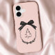 Modern Black Bow Stylish Girly Blush Pink Monogram iPhone 17 Case.