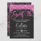This unique and original Sweet 16 invitation design features modern, girly, and chic faux printed bright pink dense glitter dust with custom brushstroke glitter typography on a simple black background. This elegant and glamourous invitation will wow your guests and be the perfect compliment for your daughter's pretty and classy birthday party. Change the colour of the background or text by clicking the "customise" button for more options.