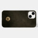 Simple Modern Brushed Metallic Gold Monogram Emblem Distressed Leather Texture Phone Case. Elegant brushed metallic gold monogram emblem with monogrammed initial in modern typography on a distressed leather texture background in shades of black chestnut brown.