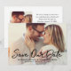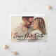 Announce your wedding date to family and friends! This modern wedding save the date announcement card design features a horizontal photo of the engaged couple on the front with a black brushed "Save our Date" calligraphy script overlay and a monogram of bride and groom names and wedding date that can be personalised. The back of the card includes a second photo in a vertical format and simple black text that can be personalised with your wedding details. Note, the black and white colours can be modified.