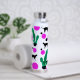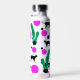 Modern Black Cat and Cactus Pattern Monogram Water Bottle