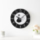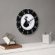 Perfect for the cat lover, this unique and modern black and white clock design has white paw prints on the outer edge and a black cat in the centre.