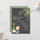 Fancy birthday dinner invitations featuring a watercolor illustration of a celebratory champagne bottle with two filled drink glasses. Text is fully editable. The reverse side is a coordinating sage green colour. (Background colours can be changed, if wanted, by using the design tool)