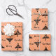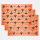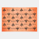 Modern Black Christmas Tree Pattern Holiday Wrapping Paper Sheets. A modern and simple black Christmas tree pattern on a blush orange background with a Merry Christmas text.