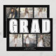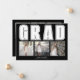 Make your Graduation celebration extra special with this Elegant black Class of 2024 GRAD graduation photo announcement. This modern design showcases the word "GRAD" in a white font against a black background, creating a bold contrast. The front of the announcement proudly displays three captivating photos, capturing memorable moments from the graduate's journey. On the back, three additional photos are showcased, along with all the important details of the graduation ceremony, ensuring that every recipient has all the necessary information to join in the celebration.