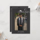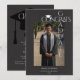 Celebrate your achievement with this modern black and white Congrats Graduate photo graduation announcement design. The front features a bold photo layout, while the back includes a stylish cap and diploma silhouette. Perfect for high school or college seniors wanting a minimalist, professional look. Use a color or black and white photo. Created by Simply Farmhouse Press.