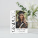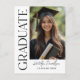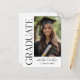 Elegant graduation announcement postcards feature a vertical photo of the graduate with modern decorative black serif Graduate text and text that can be personalised with the graduate's name and class year. The back of the postcard includes simple announcement wording that can be personalised and mailed by the proud parents of the graduate. Simply include a guest address and postcard stamp to mail - no need for an envelope.