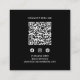 This modern minimalist black and white square business card features your business logo on the front and custom QR code on the back. Customize the text and the social media icons with the easy to use icons.
