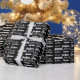 Modern black name collage wrapping paper for a boy's birthday decorated in nine different fonts spelling your name in white. Cute custom kids gift wrap with fun typography in white.