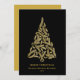 Modern Black Elegant Gold Pine Bough Tree Simple Holiday Card