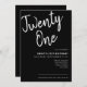 Modern Black and White 21st Birthday Invitation. Minimalist 21st birthday invitation template design featuring elegant calligraphy hand lettered script font.
