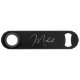 Create your own custom, personalised, modern elegant white calligraphy typography script font monogrammed on black background, trendy chic stylish cool professional extra durable stainless steel speed bottle opener bar key featuring a length and design to open bottles with speed and ease. Simply type in your name / family name, to customise. Makes a great gift for birthday, christmas, holidays, wedding, graduation, fathers day, friendship day, special tastings, milestone birthdays, and more, for your loved ones, mum, dad, girlfriend, boyfriend, husband, wife, couples, newlyweds, beer lovers, bartenders, men, women, him, her, friends and family.