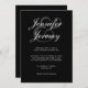 These elegant custom wedding invitations feature a modern and minimalist white and grey calligraphy script design on a simple black background. Personalise with your names and wedding date along with all your wedding details. Best of wishes for your wedding and marriage! Designed by Susan Coffey.
