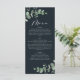 Beautiful delicate eucalyptus foliage wedding menu design. Modern elegant on trend sage green, black, navy blue and white stylish contemporary rustic collection. Ideal for spring, summer, fall, autumn or winter weddings.