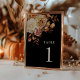 Modern Black Fall Botanical Wedding Table Number
