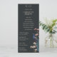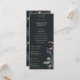 This elegant, modern black one-sided Wedding Program features rustic floral hand-drawn illustrations of a blue and teal peacock bird perched on a magnolia tree branch in full bloom, showcasing vibrant cream and blush pink magnolia flowers, all against a modern black background. The back features an elegant floral and bird pattern with coordinating illustrations. Customise with your wedding details, including bride and groom monogram, the date, title, order of service and wedding party.