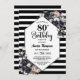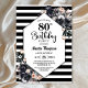 Modern Black Floral Striped 80th Birthday Party Invitation