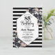 Modern Black Floral Striped 85th Birthday Party Invitation