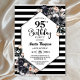 Modern Black Floral Striped 95th Birthday Party Invitation