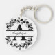 Modern Black Floral Wreath Split Monogram "A" Key Ring