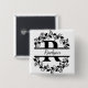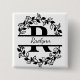 Modern Black Floral Wreath Split Monogram "R" 15 Cm Square Badge