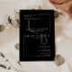 Make a bold statement with this ultra-modern black wedding invitation, featuring a sleek geometric frame and large, stylish initials. This design exudes elegance and sophistication, perfect for contemporary couples looking for a minimalist yet impactful invitation. The striking black background enhances the sharpness of the initials and frame, creating an unforgettable introduction to your wedding. Ideal for black-tie, evening, or city weddings, this invitation sets the tone for a refined, stylish celebration.