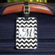Modern Black Glitter Chevron Zig Zag Stripe Fabric Print Pattern Monogram Initial Luggage Tag