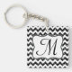 Modern Black Glitter Chevron Zig Zag Stripe Monogram Initial Personalised Key Chain