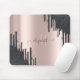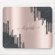 Modern Black Glitter Drips Rose Gold Monogram Mouse Pad