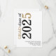 Modern Black Gold Text 2025 White Graduation. Available digitally and printed. A contemporary typographical design with stylish large typography rotated and to the left hand side at the top in black and gold. Easily personalise the rest of the text.