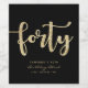 Minimalist 40th birthday black and gold wine bottle label in modern, chic and elegant typography style. Featuring age "forty" in sparkly gold. Customise with age, name, and year of birth.