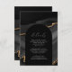 This design features a black arch on a background of black watercolor agate trimmed with gold faux foil. The word "details" appears in elegant white calligraphy script. Add your wedding information in white italics.