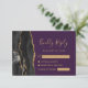 Modern Black Gold Agate Deep Purple Wedding RSVP Card