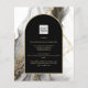 Introducing our luxurious black and gold wedding stationery collection, featuring a stunning smokey black and white with gold accents agate look backdrop and arch frame for the text. This design is perfect for couples who want to add a touch of elegance and sophistication to their wedding stationery.
