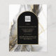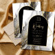 Introducing our luxurious black and gold wedding stationery collection, featuring a stunning smokey black and white with gold accents agate look backdrop and arch frame for the text. This design is perfect for couples who want to add a touch of elegance and sophistication to their wedding stationery.