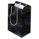 Thank you gift bag with a beautiful image of dark abstract agate stone. Colours swirl in waves. Main colours are black, blue-grey with a faux-gold ribbon running through the design. Modern and trendy.