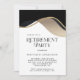 An elegant retirement party invitation with a unique abstract waves pattern in modern black, gold, and tan over a white background. The combination is strikingly attractive and makes a professional impression. Personalise the easy-to-use text template with your event details. These invitations are available as both printed and paperless digital download for your convenience.