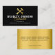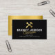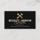 Make a bold, professional first impression with these modern construction contractor business cards. Featuring a sleek black background and a striking faux gold foil hammer and spanner logo, this design is perfect for builders, contractors, and trades professionals who want to stand out.